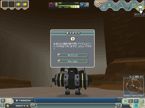 ミッションやダンジョンに入った際、ESCを押して自分の意思で終了(脱出)することができます。 ギブアップをすると全滅し、コマンドー全員の修理費が必要となります。ミッションでは失敗となり、ダンジョンでは取得したアイテムや経験値もすべて失ってしまいます。